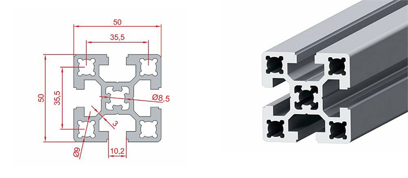Ein leichtes Profil, das oft für die Konstruktion von kleinen Rahmen, Schildern, Vitrinen o.Ä. verwendet wird.